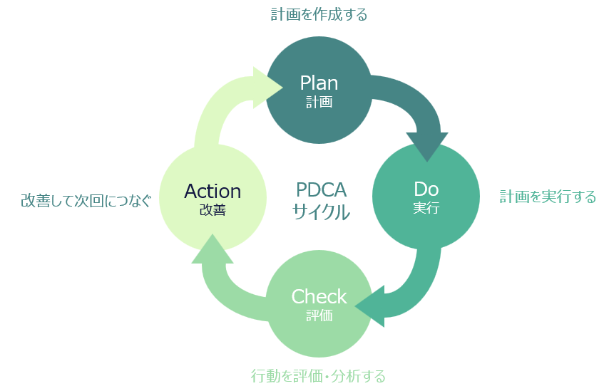 Action(改善): 課題を分析し、次の計画に活かす改善策を立てる。